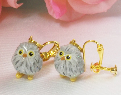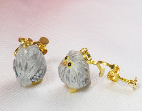 フクロウさんの丸っこいフォルムがイヤリングに合うかなぁ〜と思って作ってみました。