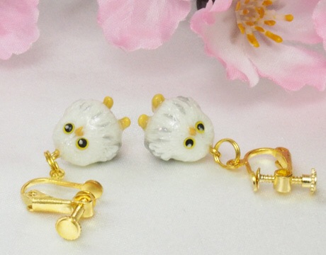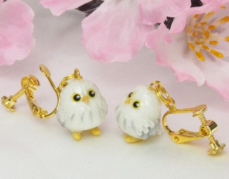 フクロウさんイヤリングの白バージョンです。