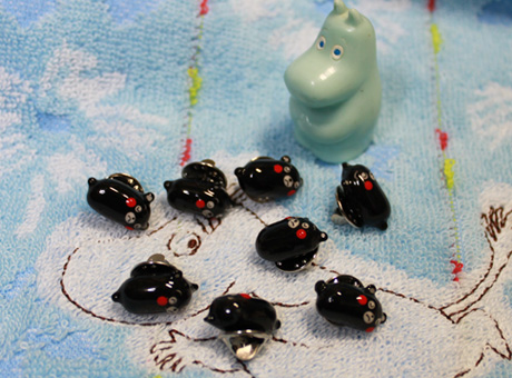 後ろに立ってるムーミンの指人形と比べてもかなり小さな作品ですね。