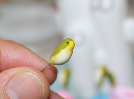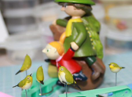 目や、くちばしや、尾など細部の部品を付けて・・・・乾燥させます。
