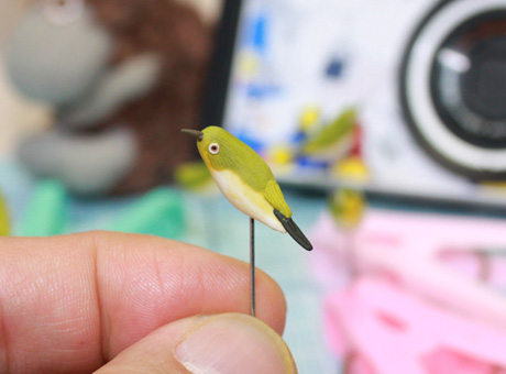 ・・・ってことで今日の粘土細工作品は・・・写真のメジロちゃんです。