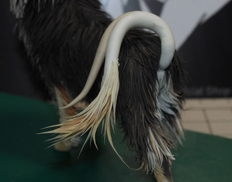 ここから少しずつ長めの毛を付けて行って、最初の写真のようなシッポが完成します。