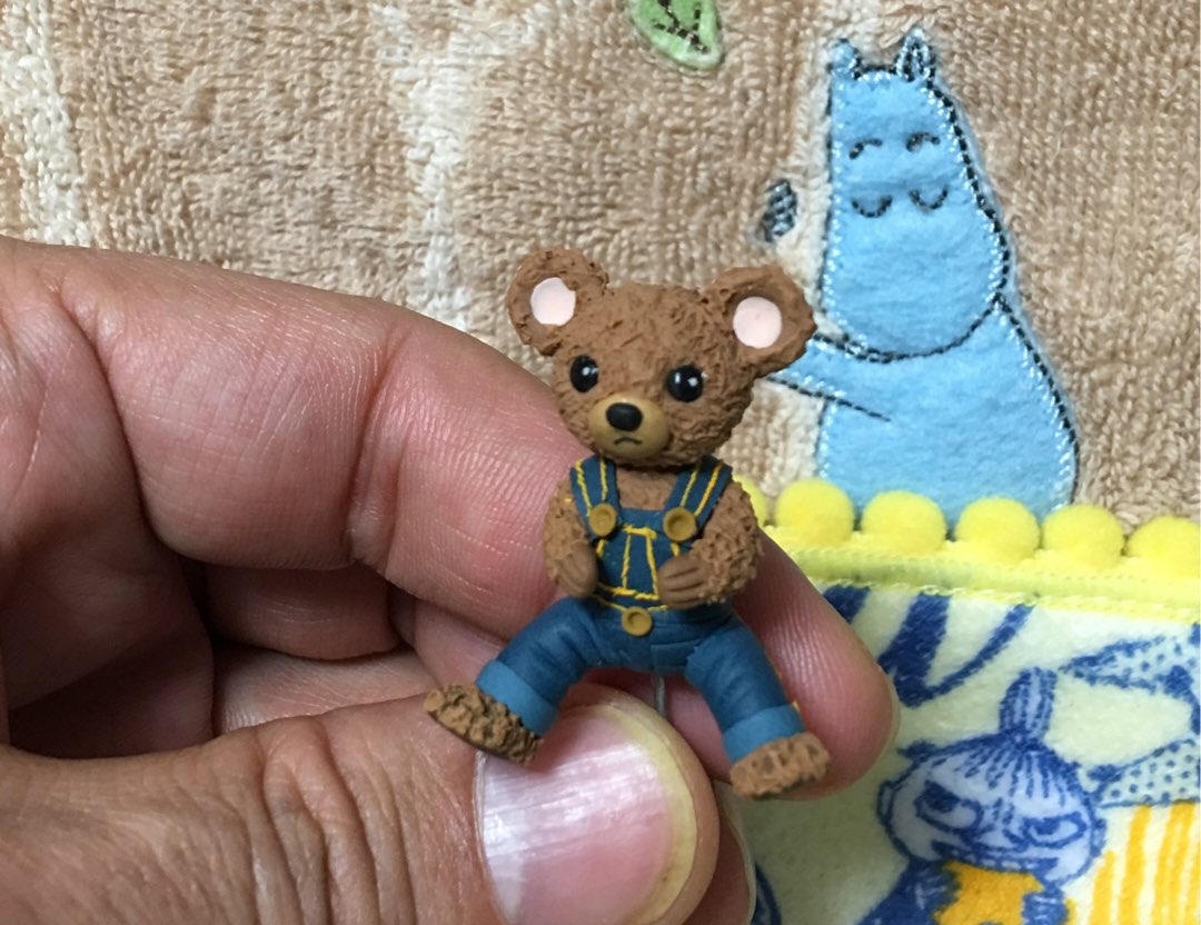 最近は野鳥の小鳥やフクロウばかり作っていたので、ちょっと違う物を作ってみようと、気まぐれで子グマちゃんを作ってみました。