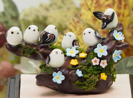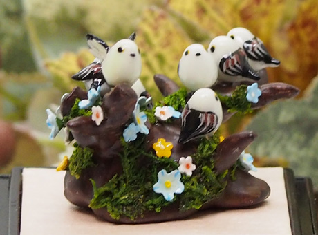7羽のシマエナガちゃんをジオラマ風にレイアウトして卓上などに飾れるようなフィギュアにしました。