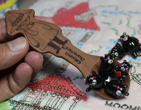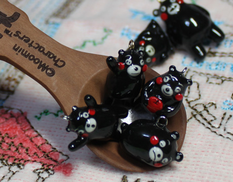 写真は先日、立川のムーミン ショップで買って来たスナフキンの木製スプーンの上に乗っけた小さなクマもん達です。