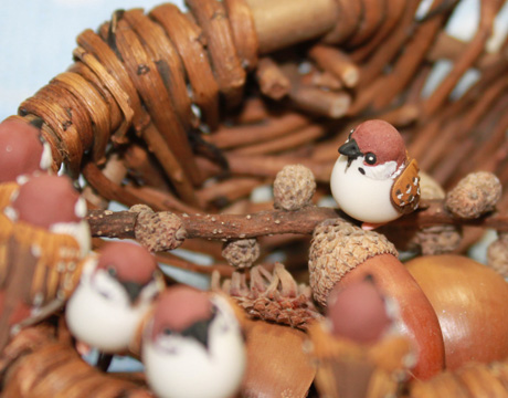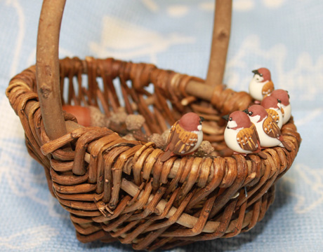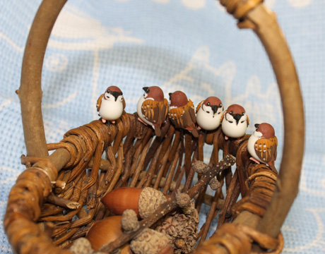 スズメとドングリは大きさも色も似ているのでいっしょにしたら可愛いかなって思いました♪