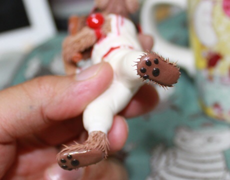 バットと、構えた腕が邪魔で最後の耳の毛付け作業はかなり難しそうですね‼︎