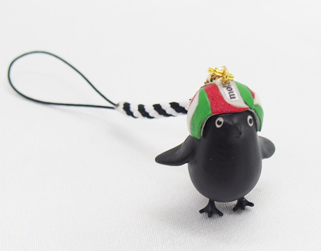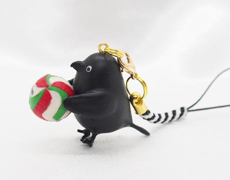 バレーボールを頭に被ったカラス君と、ボールを手に持ったバージョンのカラス君のストラップ作品です。