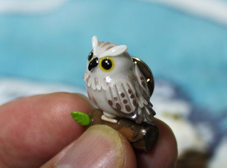 今日の粘土細工作品は・・・・写真のフクロウさんです。