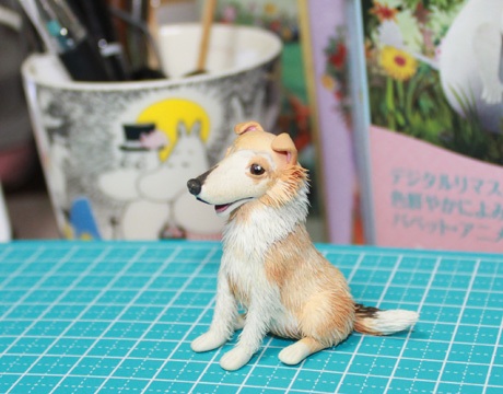 さて、写真のコリー犬は制作途中だった仔犬のミシェルちゃんです。