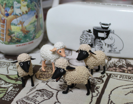 今日の背景はコミック柄のムーミンハンカチと、楽しいムーミン一家柄の紅茶用マグカップとメガネケース・・・でした♪