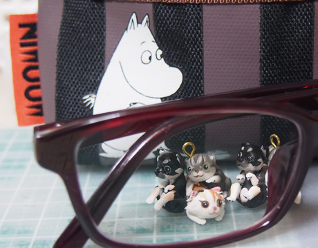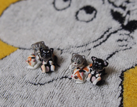 先日の指輪作品と同じチワワちゃんとネコちゃん2匹の合体ストラップ作品を作っています。