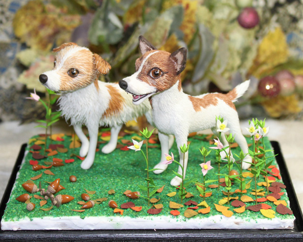 さて、随分長い時間が掛かってしまいましたが、ジャックラッセルテリアのメルシーちゃん、ダンケくんの作品がやっとやっと完成しました。