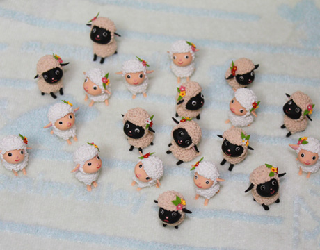 子ヒツジ達は20匹もいるので意識して作らなくても適当に表情が違って来て・・・ちょっと微妙な顔の子もいますが、それもまた個性ですね♪
