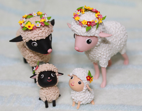 こちらの子羊ちゃん達にもそれぞれ頭にお花を付けました。