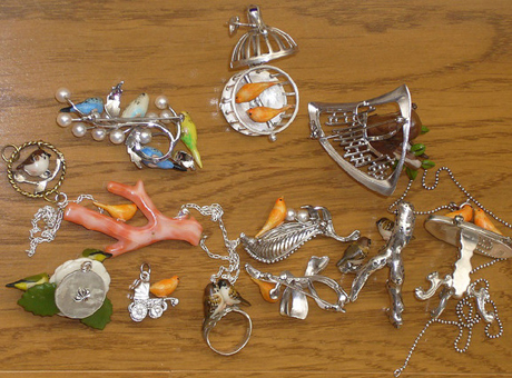 子猫・ワンちゃん・スズメ・メジロ・フクロウ・野鳥・ブローチ・指輪作品