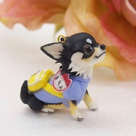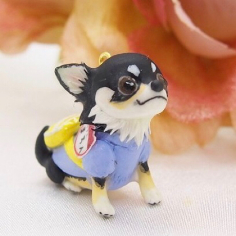 オーダーで制作した幼稚園服を着たチワワちゃんのストラップ作品です♪