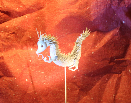 背景はパソコンの中で竜を切り抜く際に、輪郭がわかりやすいようにと朱色の和紙を置いたのですが・・・