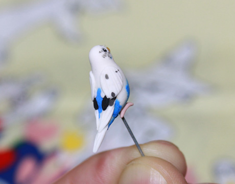 ・・・で、走るのを止めて朝まで粘土仕事をやっていたお陰で写真のインコちゃんが完成しましたよ♪