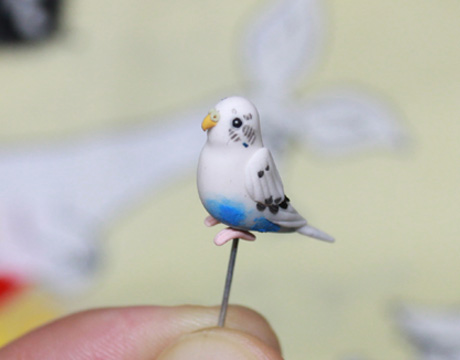 とっても小さいのに本物のようなインコちゃん、今にも羽ばたきそうですね^^