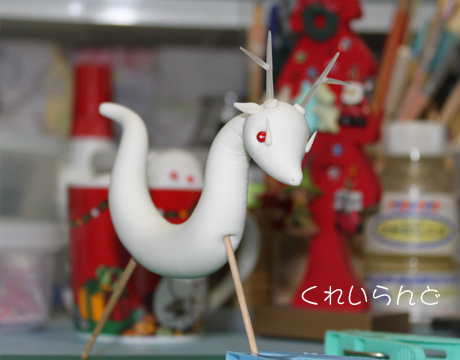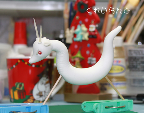 年賀状作品用の粘土作品の竜とは別件で白龍を制作しています。