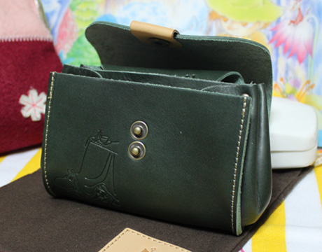 写真のお財布は最近発売されたばかりの革製アコーディオンウォレット「飛行おにの帽子」です。