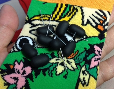 黒豆の下にあるのは小さい子供用のスナフキンのくつ下です。