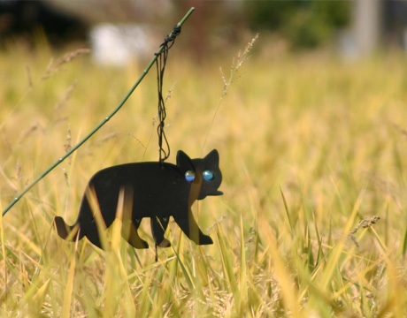 近所の小さな田んぼの稲穂をカラスやスズメ達から守っている黒ネコちゃんです(*^o^*)