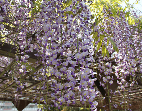 甘〜い香りを漂わせて藤棚の藤が満開になっています♪