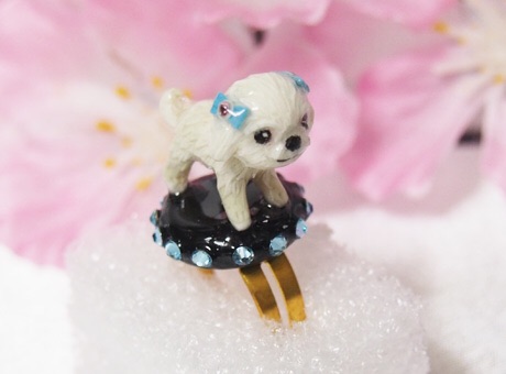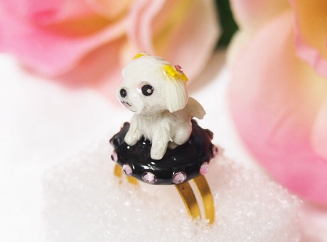 写真のマルチーズちゃんの指輪が2つ完成しました。