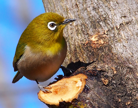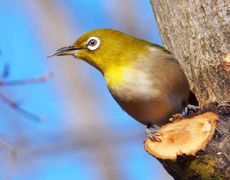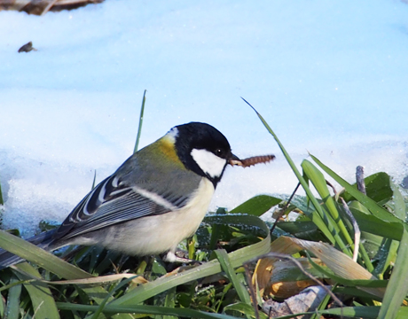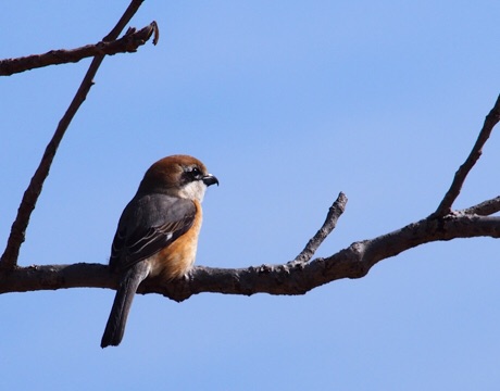 ずっと止まっていた枝からちょこんと下に降りて獲物を食べ始めました。
