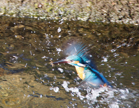 なんとかしっかりと撮れたのはこの水中から出てくる所のワンショットでした。