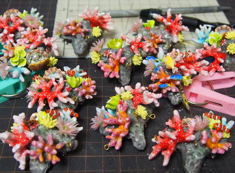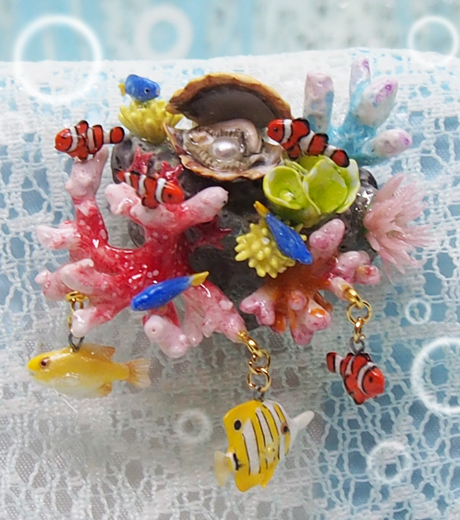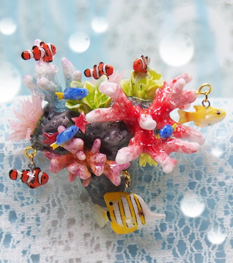 色々なサンゴ、イソギンチャク、ヒトデ、4種類の熱帯魚などをアレンジして完成させました。