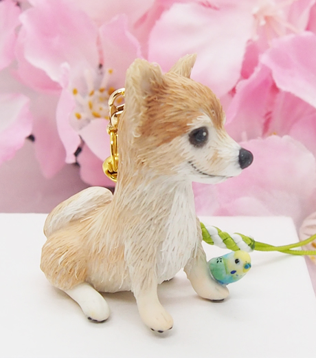 水色インコちゃんと仲良しワンコのオーナメントです。